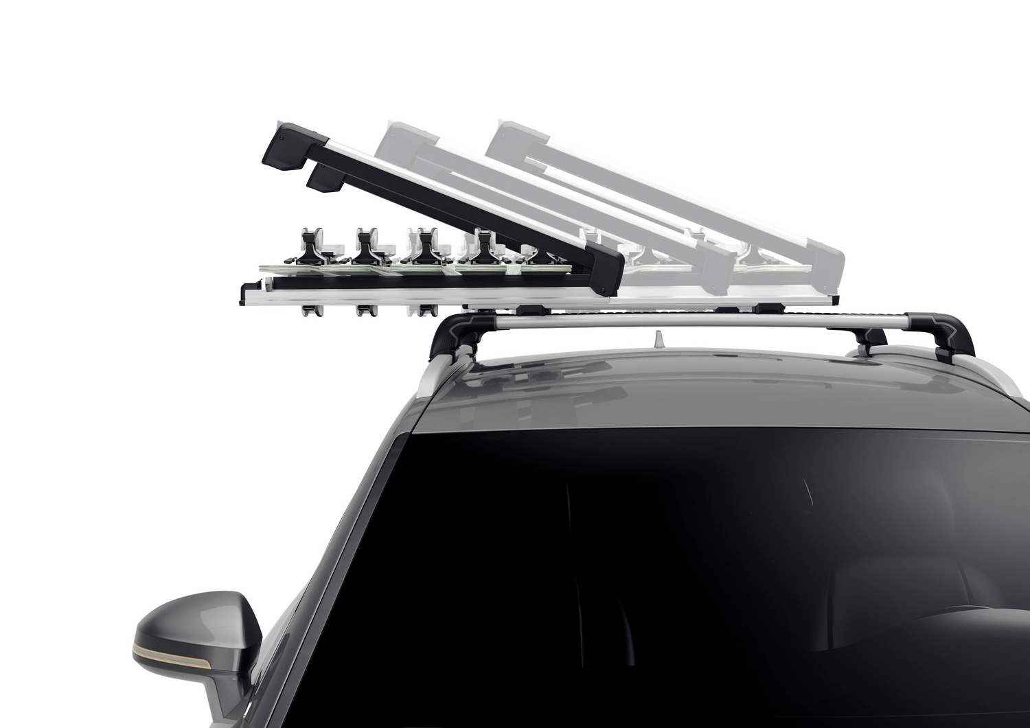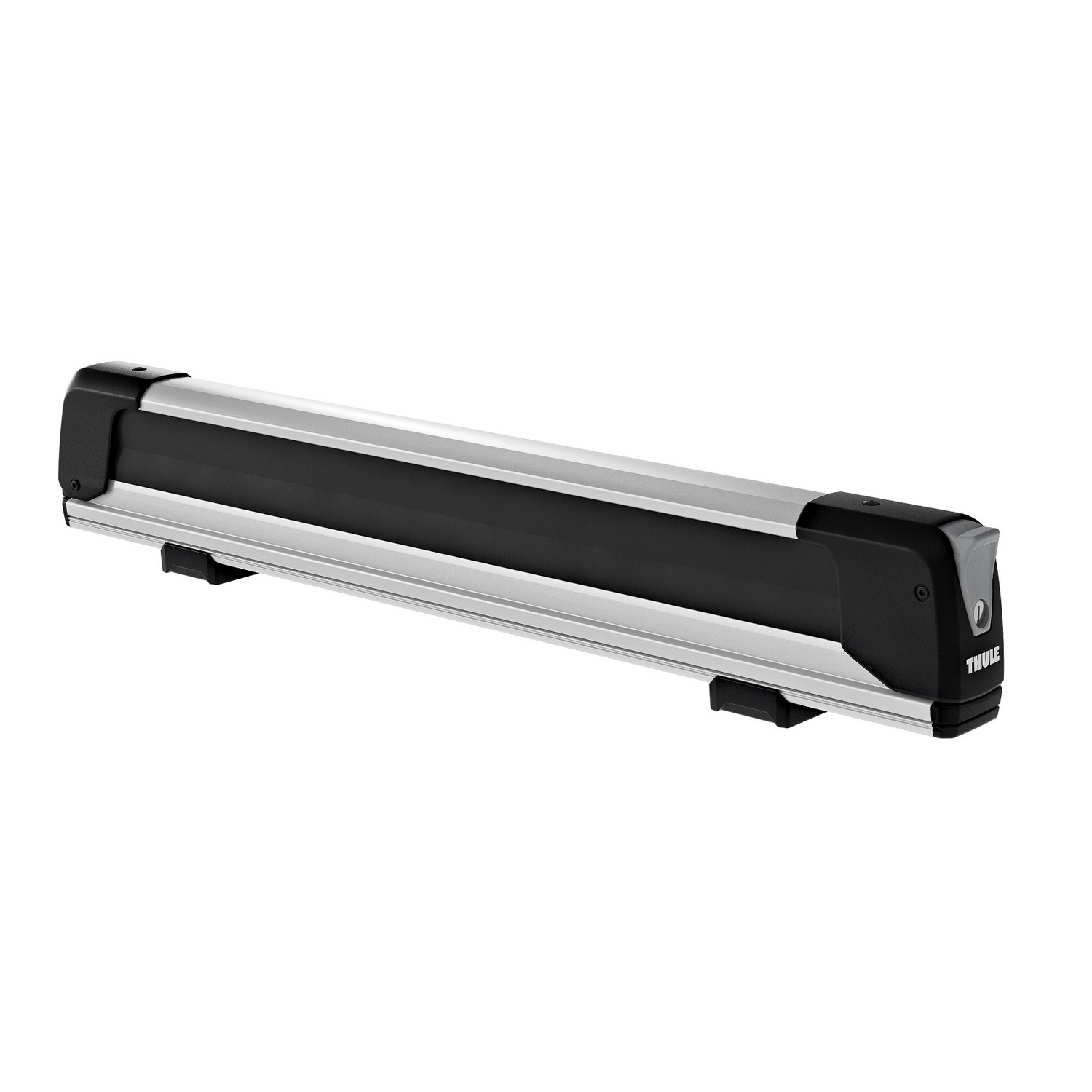 De handige SnowPack Extender van Thule zorgt dat u uw ski’s en snowboards mee kunt nemen zonder een grote dakkoffer op uw dak te monteren. Deze drager is eenvoudig op uw dak te bevestigen en zorgt dat u meerdere paar ski’s of snowboards mee kunt nemen. Het extreem zachte rubber zorgt dat uw boards en uw ski’s geen krassen op zullen lopen tijdens het vervoer terwijl ze toch erg stevig vast zullen zitten. Het handige van de Extender is dat hij kan glijden op de rails, zodra hij opengeklapt is. Zo hoeft u nooit meer oncomfortabel over het dak van uw auto te buigen als u deze SnowPack aan het inladen of uitladen bent. De grote knop van de SnowPack zorgt dat hij ook eenvoudig te bedienen is met handschoenen aan.