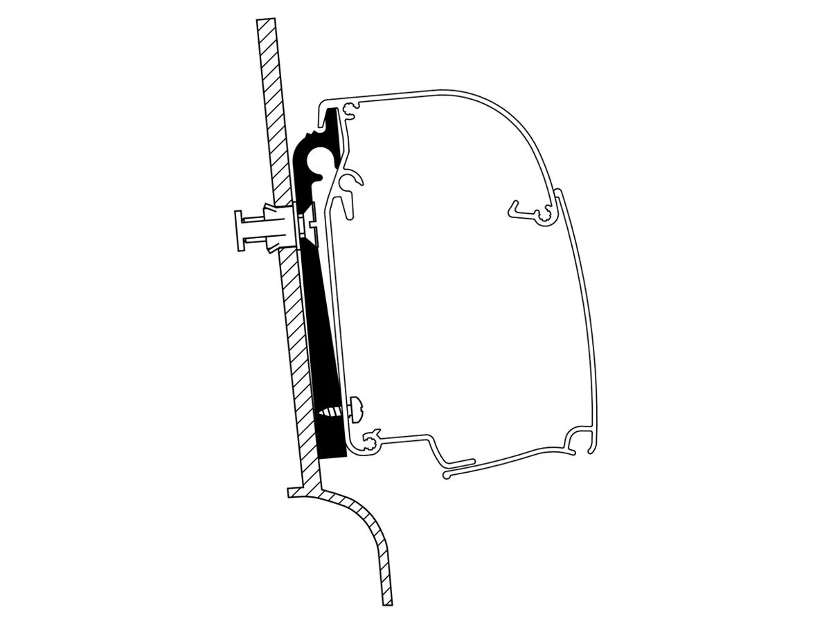 Deze adapter maakt het mogelijk om de Thule Omnistor 5200 of 4900-luifel te bevestigen aan een busje met een verhoogd dak van Westfalia. De set bestaat uit 2 beugels van 12 cm.